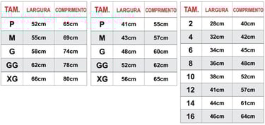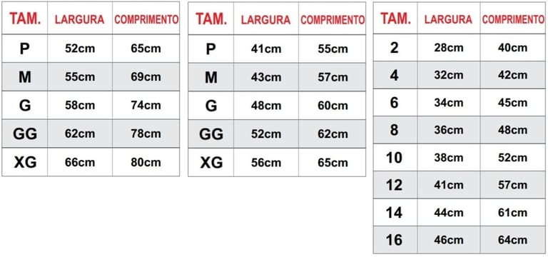Tabela de medidas